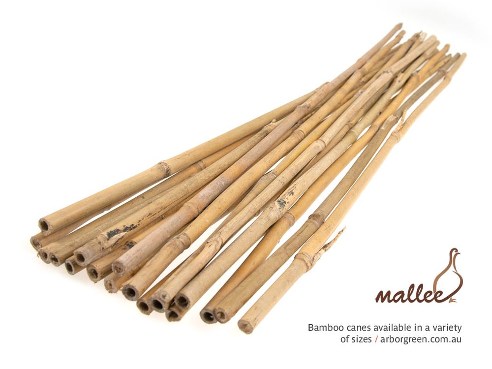Bamboo Canes, Bale of 100 - 1800mm x 16 to 18mm. Arborgreen stock a range of Bamboo Canes in a variety of sizes to suit various Tree Planting & Horticulture applications. We have 600mm long canes available in 8-10mm diameter for use with Carton Tree Guards (PLMC2). For a more robust cane the 11-13mm diameter canes are available in 750mm length, for use with Plastic Tree Sleeves (TS5435L-A), or Mallee Mesh Sapling Guards (PLSMT800350). We also stock 11-13mm diameter canes in 900mm, 1200mm & 1800mm lengths. Many other sizes available. Phone us on 1300 760 642 to discuss.