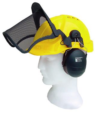 Our ventilated Airflow safety helmet fitted with the popular premium 33dba Peltor ear muffs, and a peaked Peltor mesh visor. This is the top of the range in safety helmet combos. The item received may vary slightly from the images shown due to supplier variations or product updates