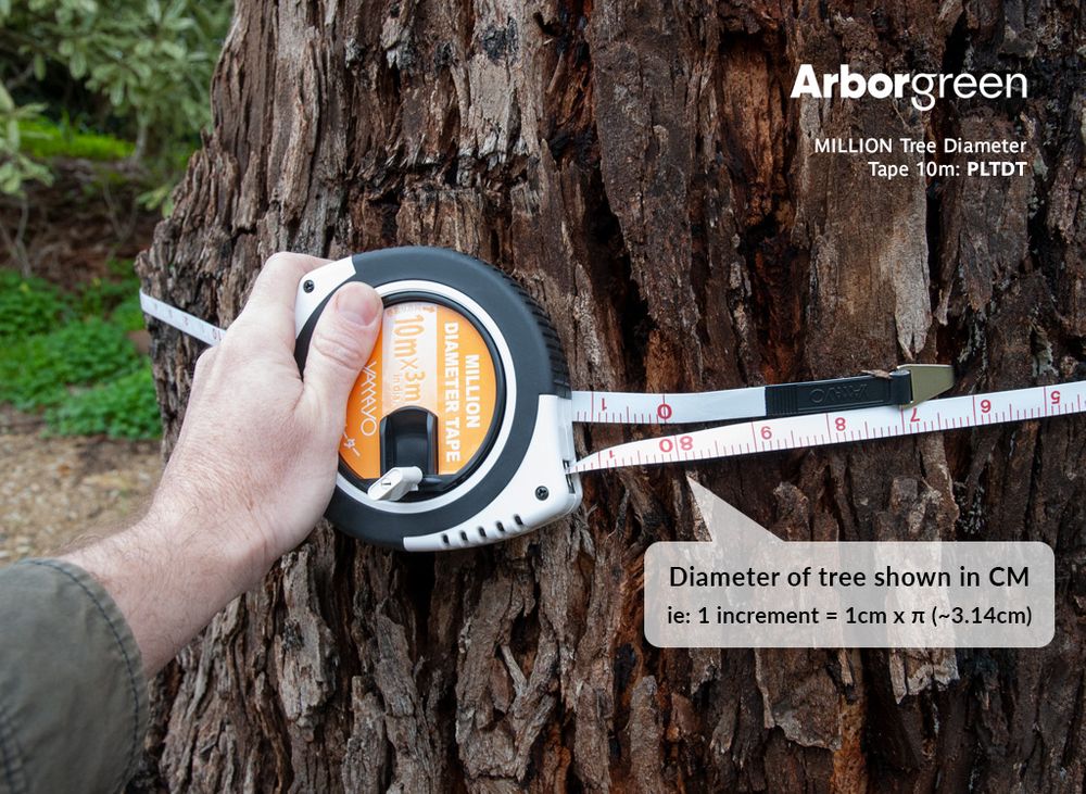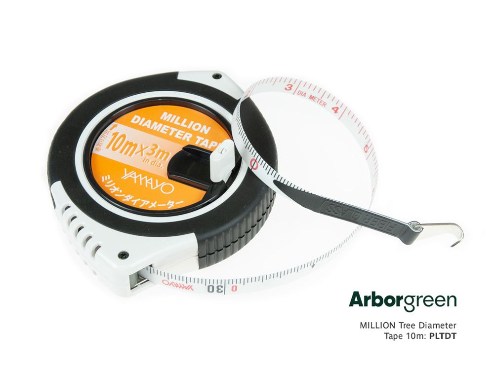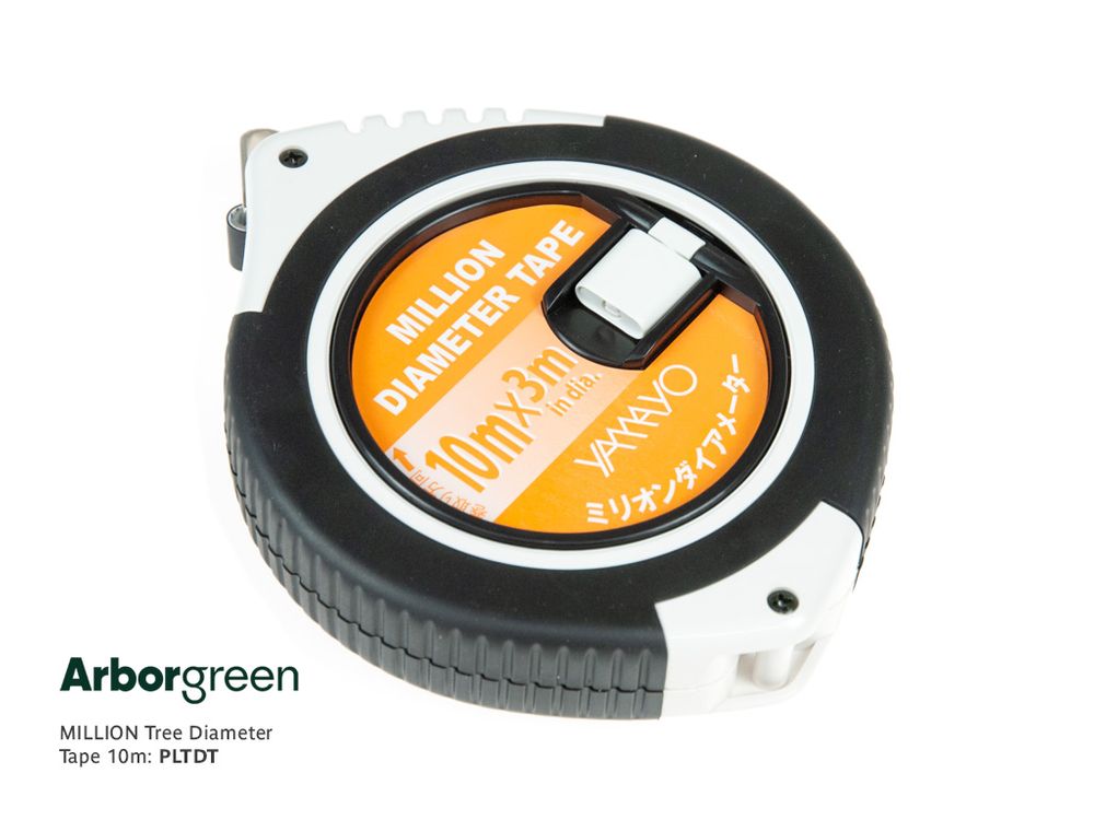 The Million Tree Diameter Tape is a fast and accurate method of measuring tree trunk diameter. This high quality fibreglass tape has a hooked end with diameter printed on one side and circumference on the other.