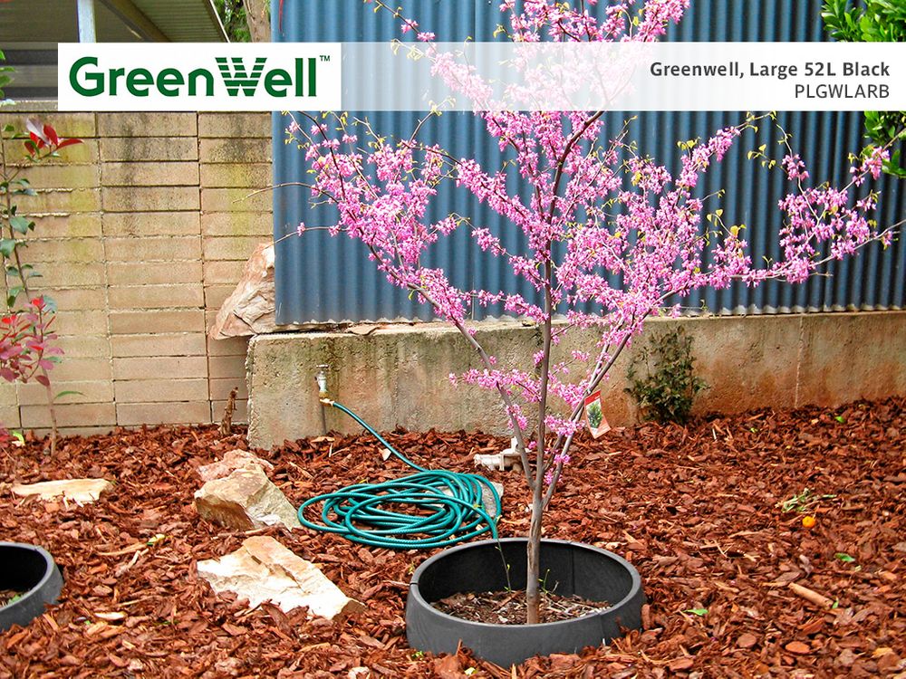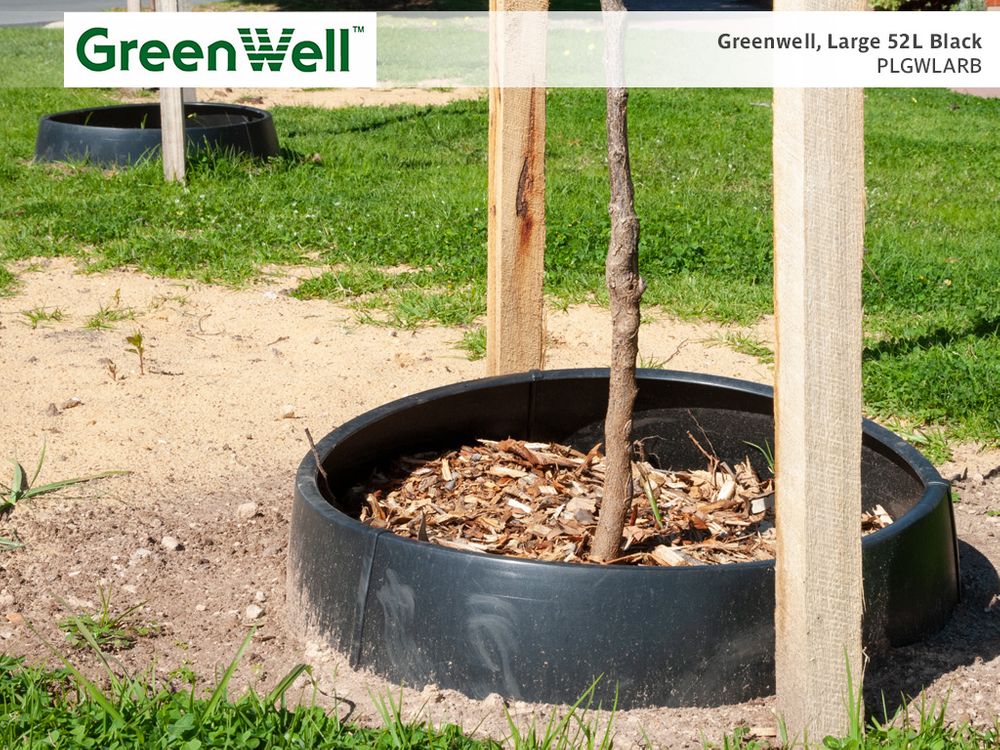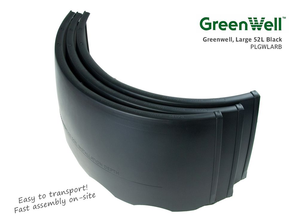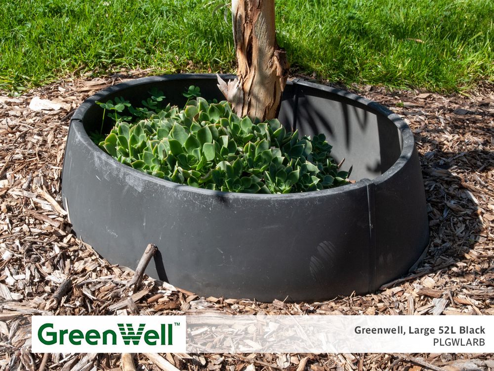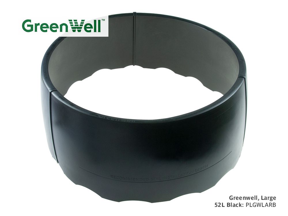 Greenwell can be positioned in the soil at whatever level is required. Standard colour is black, other colours available. Greenwells are a recycled U.V. stabilised plastic product.