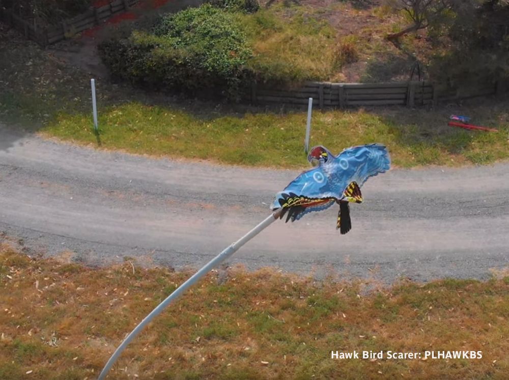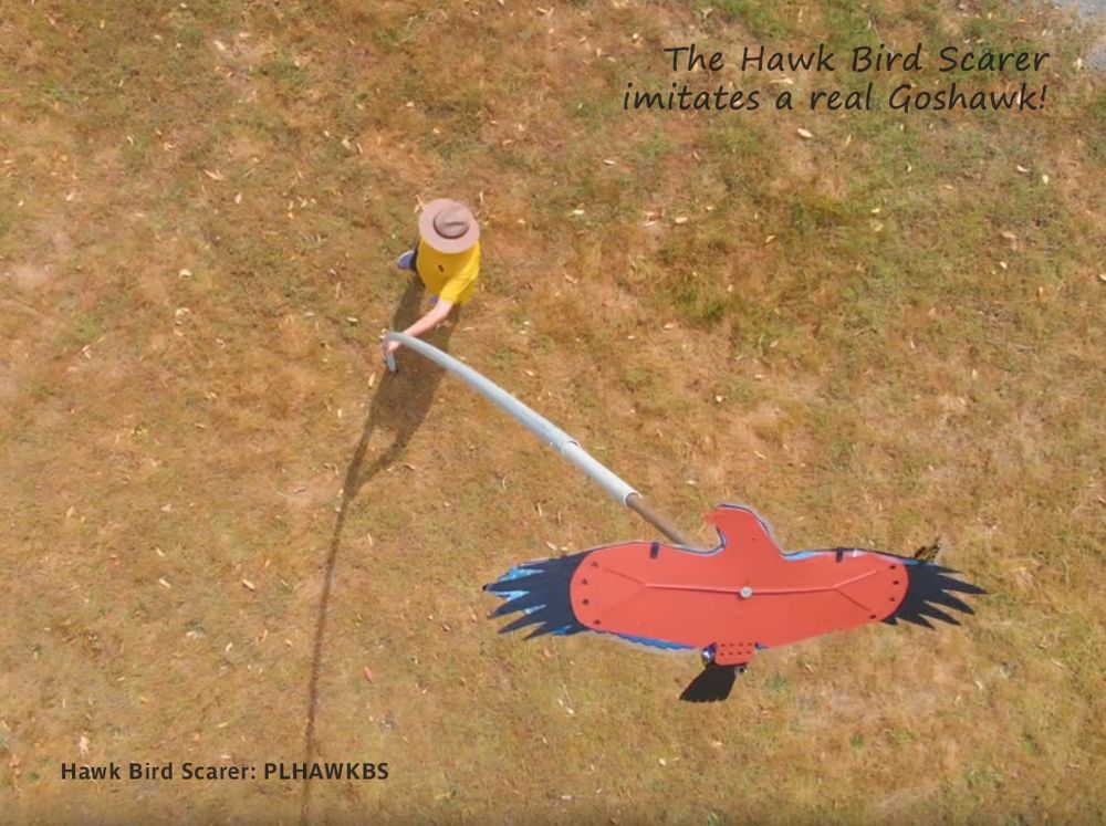 The Hawk Bird Scarer really works! Birds have an inborn fear of Hawks and they have never become used to Hawks. Scares most birds including Cockatoos, Crows, Galahs, Corellas, Starlings, Jays, Parrots, Bulbuls, Mynahs and Silver Eyes.