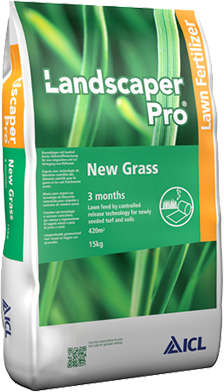 Landscaper Pro - New Grass (15kg) 20-9-7 3 month. If it’s versatility you want, Landscaper Pro® New Grass works wonderfully for new lawns as much as existing ones. The nutrients – including 20% nitrogen and 20% phosphate – encourage young seedlings in new grass to grow rapidly into a well-balanced, dense sward. But it’s also great for overseeding as the mini-granules ensure optimum nutrient distribution, and it doesn’t damage vulnerable roots. Lasts for up to 3 months.