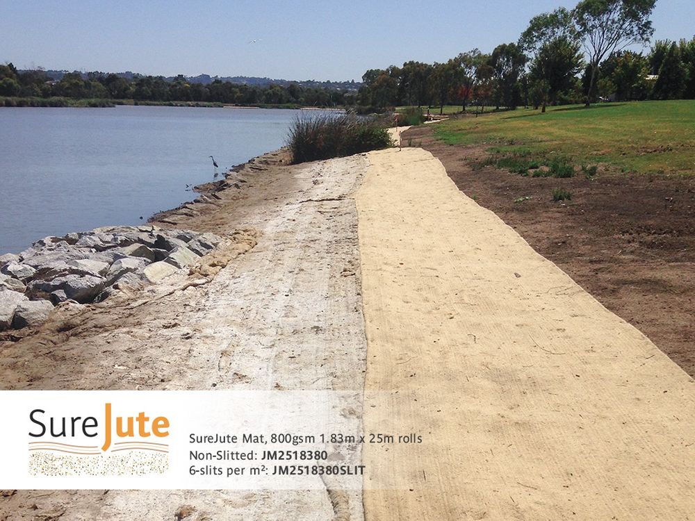 Jute Mat is an effective means of establishing vegetation quickly, suppressing weed growth, stabilising slopes & creek banks. It is often used for rehabilitation of environments such as creeks, wetlands and flood mitigation zones. Modified environments may include new land divisions, community bushcare & coastcare projects, mining and industrial landscape rehabilitation.