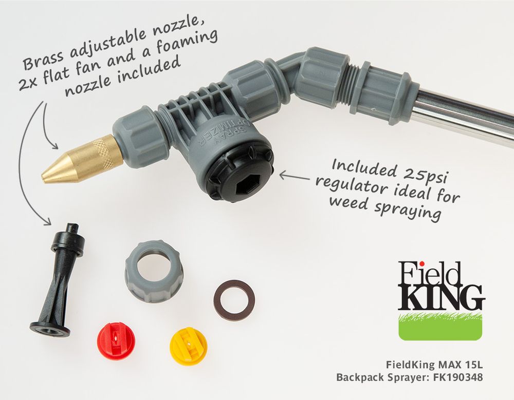 - Low pressure regulator included to spray at 25 PSI - ideal for herbicides