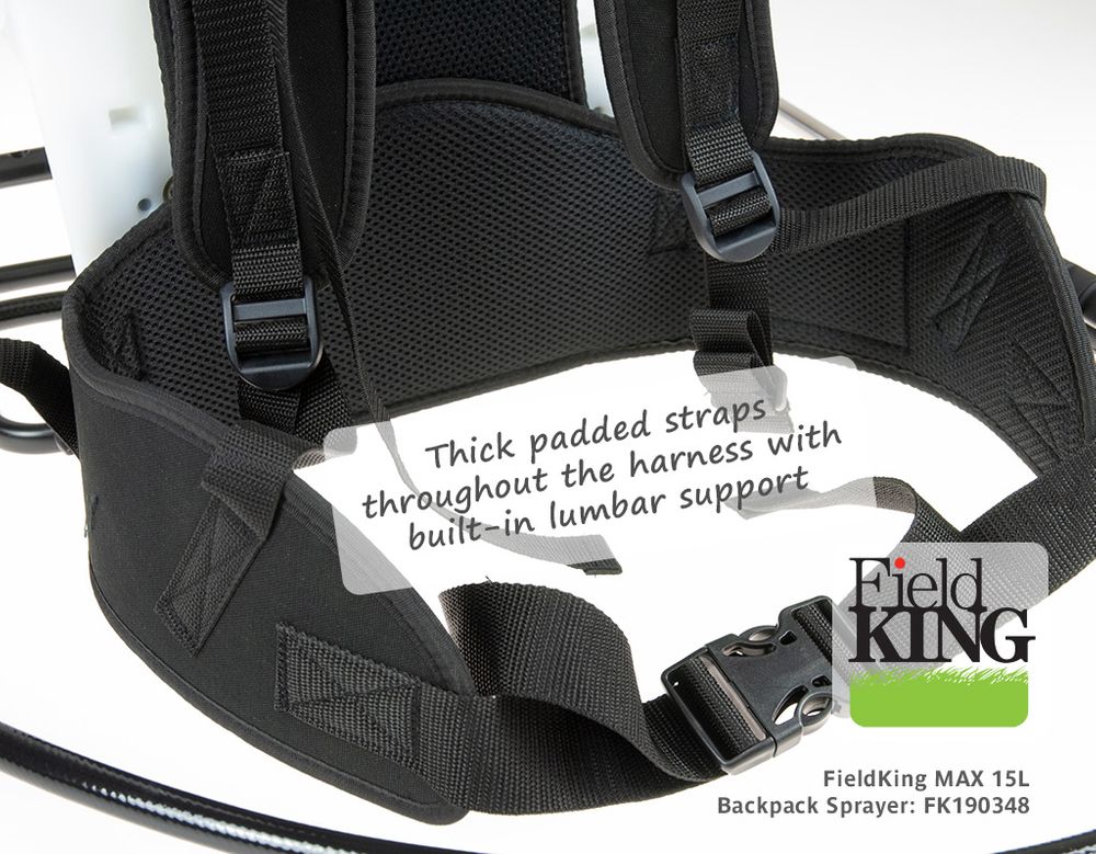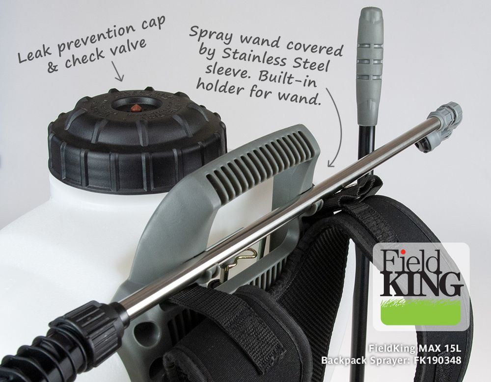 The Field King sprayer comes complete with Comfort Harness System that rivals anything on the market for user comfort and the exclusive 'No Leak' system ensures no spillage of herbicides or pesticides.