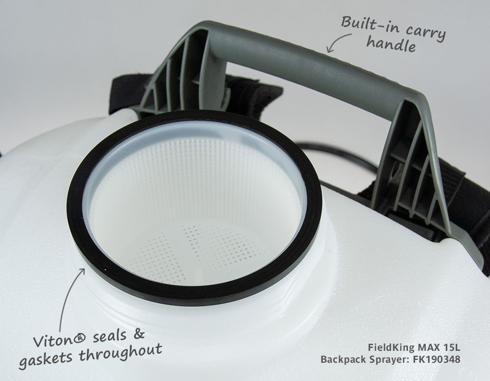 A feature packed and popular professional 15L backpack sprayer which is fitted with Viton® seals as standard, making it suitable for a wide range of chemicals, including acids such as organic based Pelargonic acid herbicides.