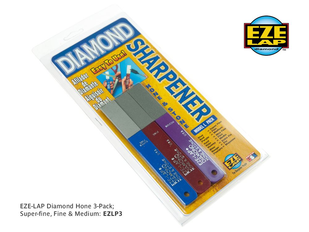 The Triple Model L Pack contains one Super Fine (EZLSF), one Fine (EZLF) and one Medium grade (EZLM) diamond hone. Made in the USA.