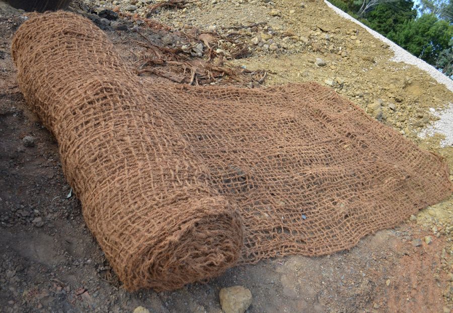 Coir mesh is 99% biodegradable, flexible and strong when laid allowing foot traffic. The mesh is typically fastened to the soil using weed mat pins; available in a range of lengths to suit different soil types or coastal zones.
