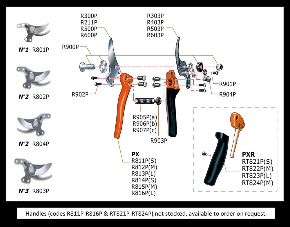 Two spare buffers for BAHCO Ergo secateurs - fits all Ergo models.