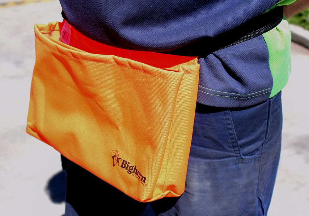 Great pouch for ties, nails and more. Single pouch with extendable belt. Pouch made from polyester with waterproof PVC coating. Belt made from PP webbing. Belt extends to 90cm. Coloured orange for great visibility when out in the field. Pouch size: 30cm L x 20cm H x 8cm W