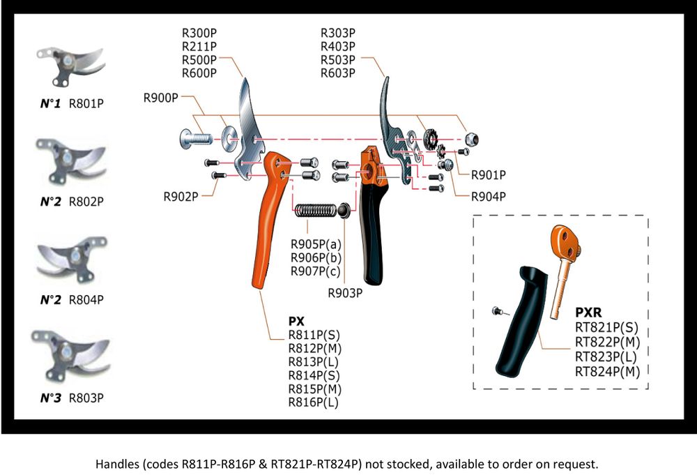 Replacement No.2 blade (medium) for BAHCO Ergo PX & PXR secateurs. Counter-blade code: BAR403P