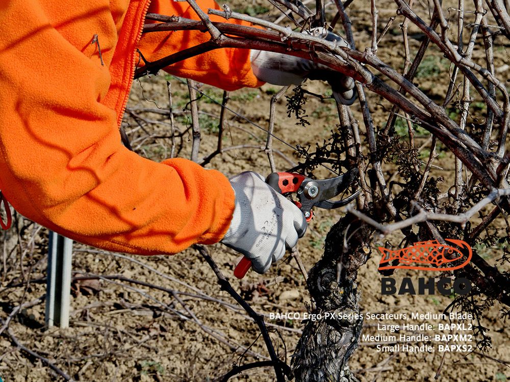 BAHCO's ERGO™ secateur offers a range of handle sizes to fit your hand. The unique inclination & angled cutting head offers less fatigue and discomfort when used for extended periods with elastomer coated upper handle adding additional comfort. The blades are specially ground to stay sharp for longer and the hollow inner face of the blade reduces friction and sticking due to sap build-up.