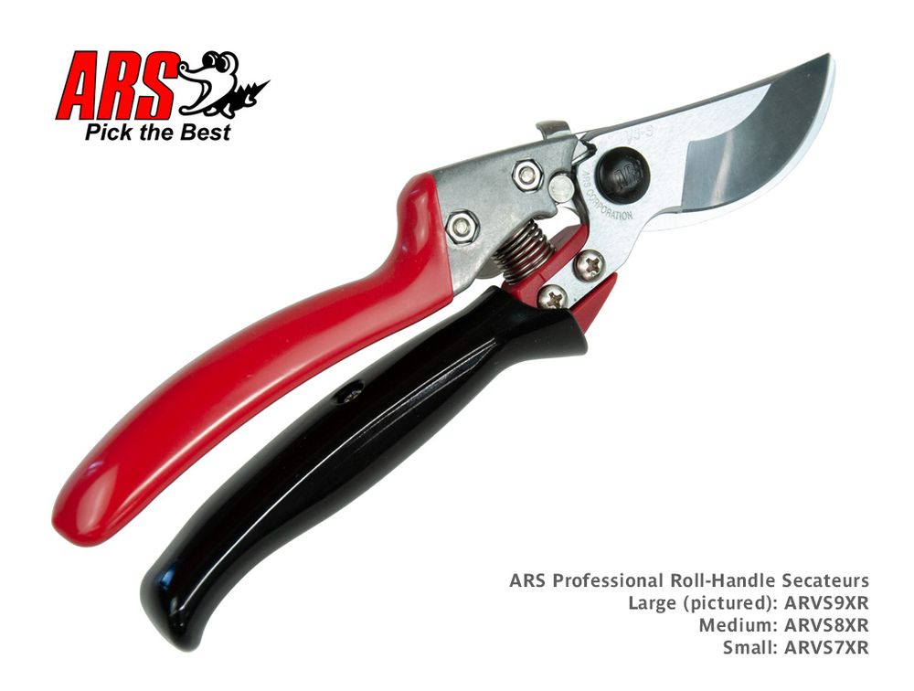 Top of the range professional secateurs with PVC grips over a die-cast alloy body. Replaceable hard-chromed blades with sap-groove on counter blade. The rotating handle offers performance and comfort with frequent and all-day use. Crafted from legendary Japanese steel ARS blades hold their edge much longer than other brands.