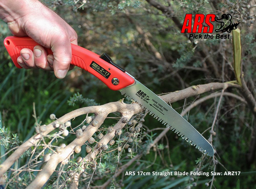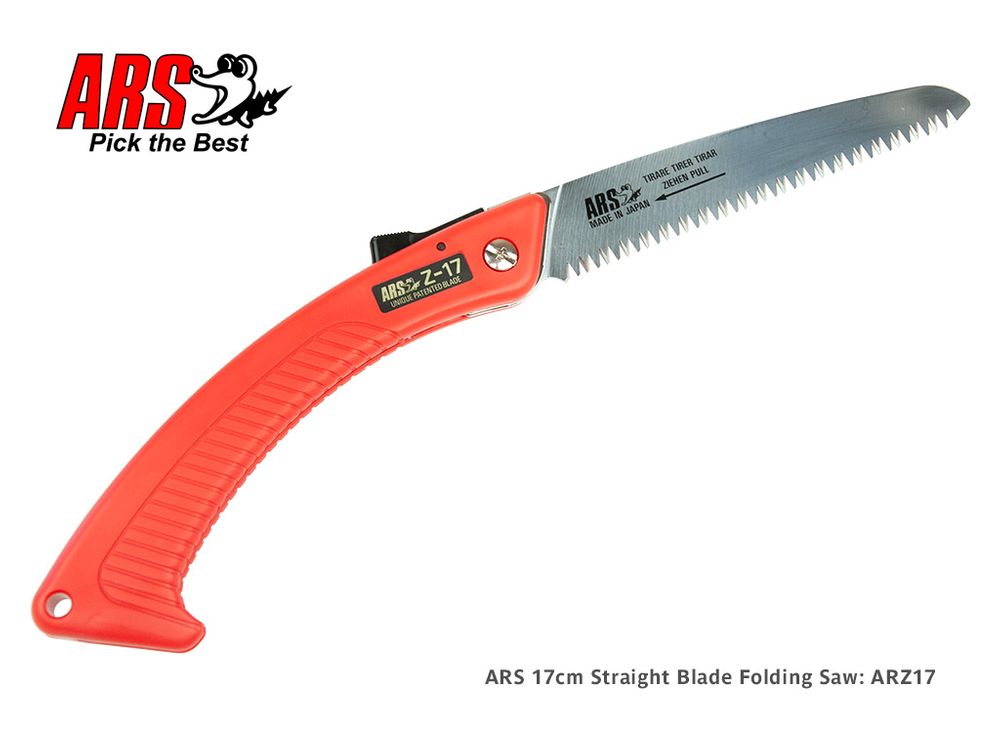The high performance ARZ17 folding saw is a similar style and design as the ARGR17 but with a straight curvature ground blade and convenient thumb catch. The curvature ground blade offers a smoother cut than a taper ground blade.