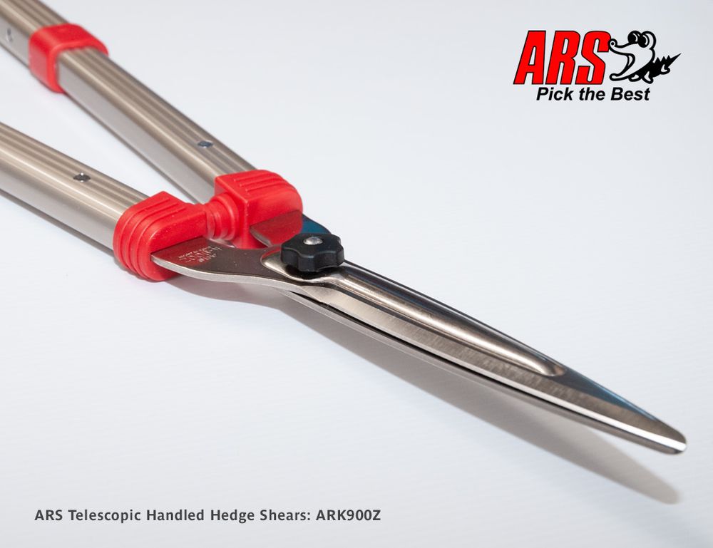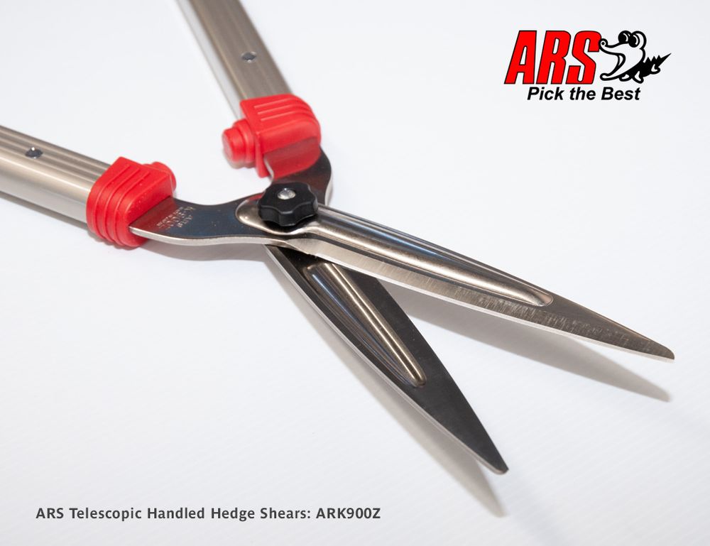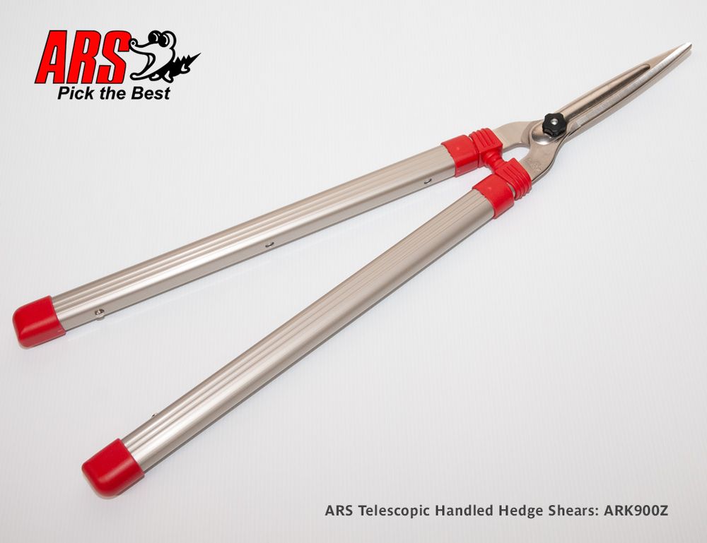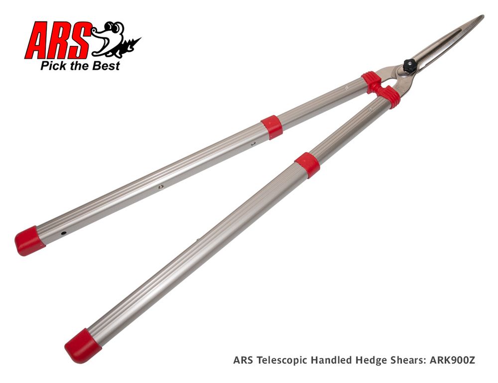 For tall topiary hedging or just reaching deep into a flower bed, the ARS K-900Z telescopic Hedge Shear is a must for every professional with difficult to reach hedge trimming jobs. Made to exact standards in Japan the shears offer classic 150mm long high carbon steel super-sharp blades and light-weight tubular handles which extend the overall length from 720 to 1050mm in 3 stops. Features:
