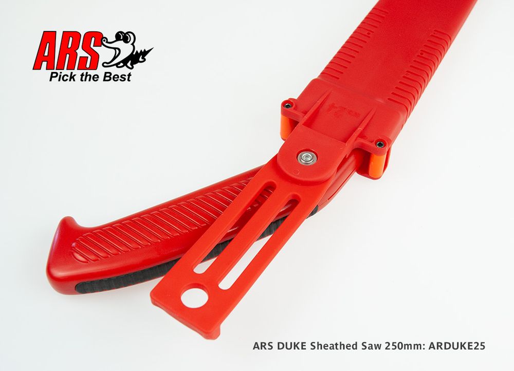The Duke25 is a professional quality 250mm straight pruning saw at a competitive price point from ARS Japan. It includes a light weight scabbard with nylon rollers to protect from damage. The scabbard or sheath can be used from either direction and the flexible rubberised belt/harness strap makes this a very versatile saw for any application. Ideal for arborists, this saw is also great for vineyard, orchard and general horticultural use. Features ARS TurboCut Teeth for a fast, clean & efficient cut.