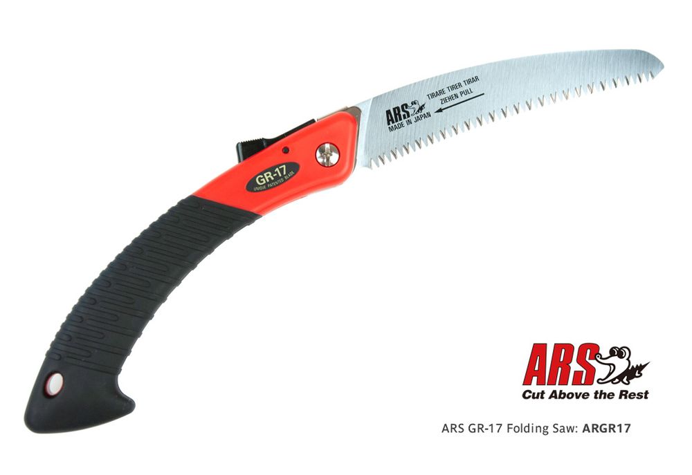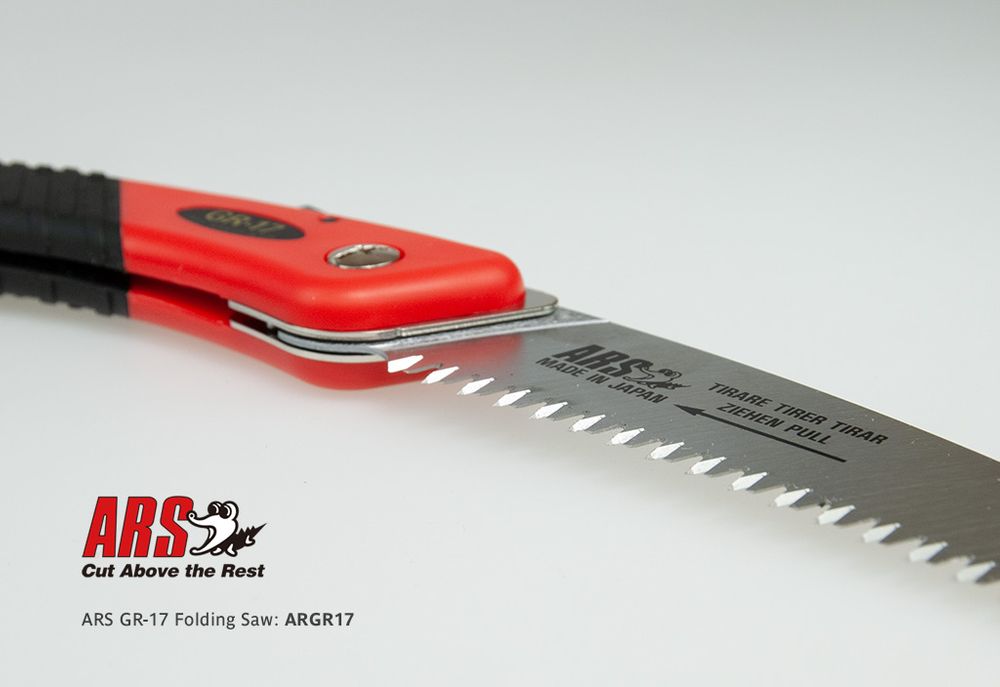 A popular folding pruning saw by ARS Japan with a pull-type cutting action. The saw features a Marquench hardened, precision ground steel blade that can be safely folded away into the handle. Made in Japan.
