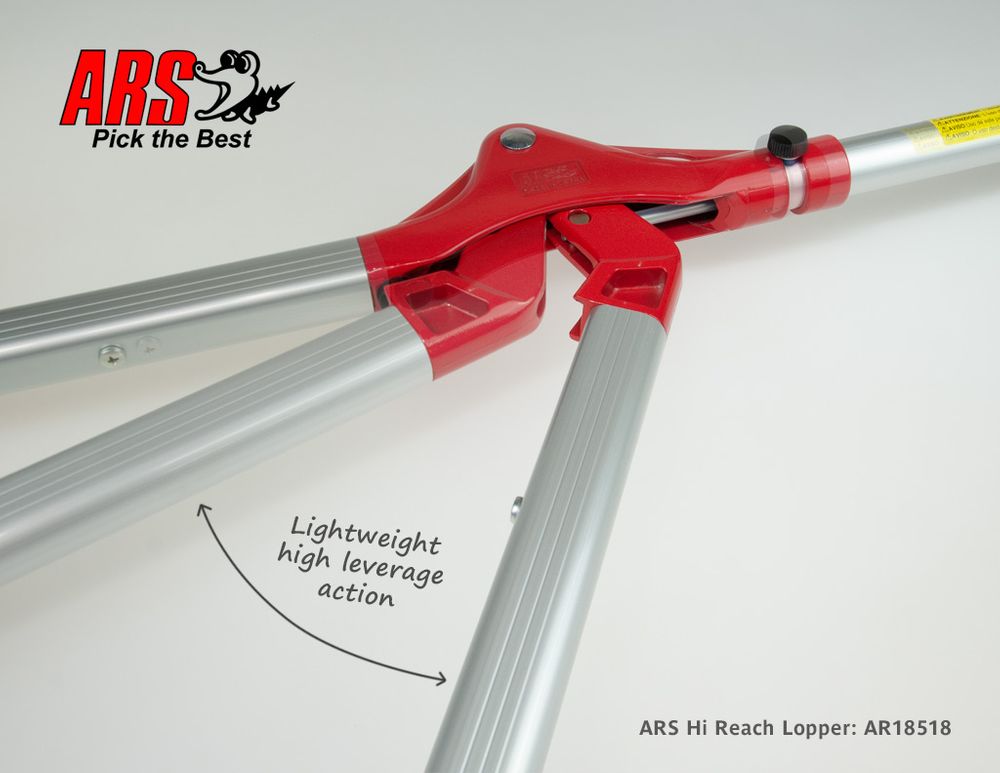 The ARS 185-1.8 is an innovative long reach bypass lopper ideal for reaching into dense bushes or up high to cut branches. The integrated mechanism fits into tight spots where regular pulley style long-reach lopper heads are difficult to operate. The lightweight, high leverage design features a bypass lopper head with revolving aluminum arm to set precise cutting angles. Manufactured in Japan this high quality pruner has long life high carbon steel blades with a non-stick coating.