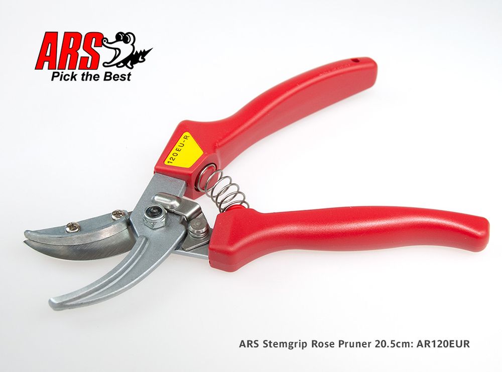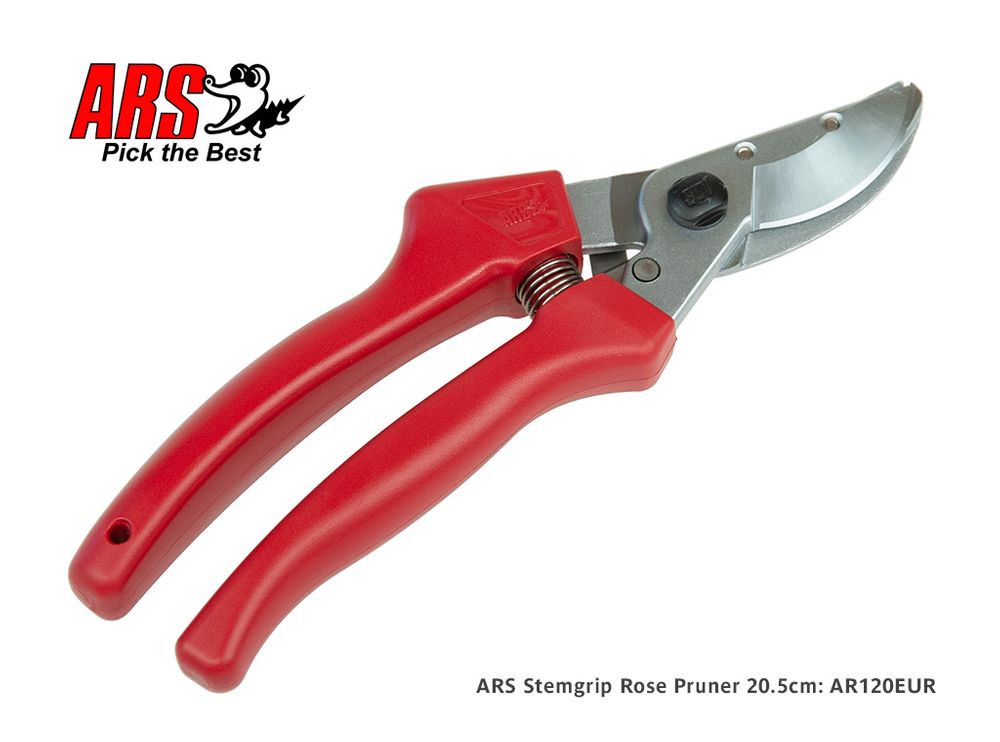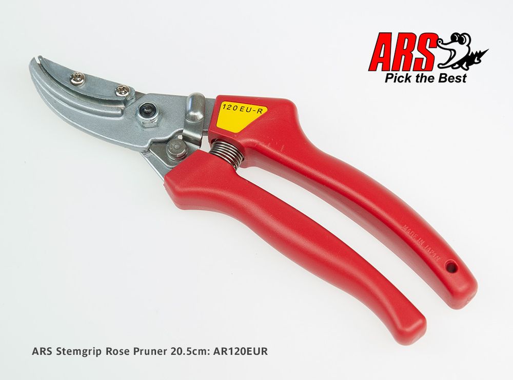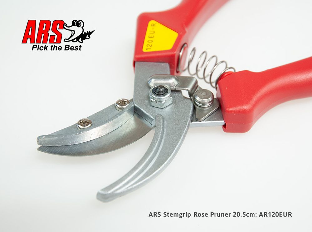 The ARS 120EUR feature a Cut & Hold stem grip device designed to hold the stem of flowers such as Roses; it is also ideal for many fruits. The 120EUR is a strong and robust secateur with comfortable moulded handles and Marquench hardened blades for long life; it suits medium to large hands.