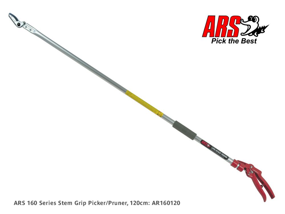 Picking Mangoes, Avocados, Citrus or other out-of-reach fruits? Try the ARS 160 Series Stem Grip Picker Pruners. Light weight and easy to handle they cleanly cut the stem and hold on until it's safely in the basket or fruit crate. Sizes from 60cm to 2.4m (or 3m telescopic - AR160ZF305). The jaws are simply operated by opening and closing the handles with one hand. For straight pruning work the upper grip is removable. The main shaft rotates through 180° to set the ideal cutting angle. Rose enthusiasts may appreciate the short reach 60cm pruner when picking and pruning. Features: