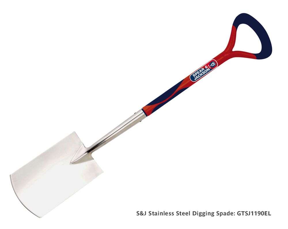 Stainless Steel digging spade by Spear & Jackson. This robust spade features a mirror polished stainless steel head for rust resistant & minimal soil adhesion.