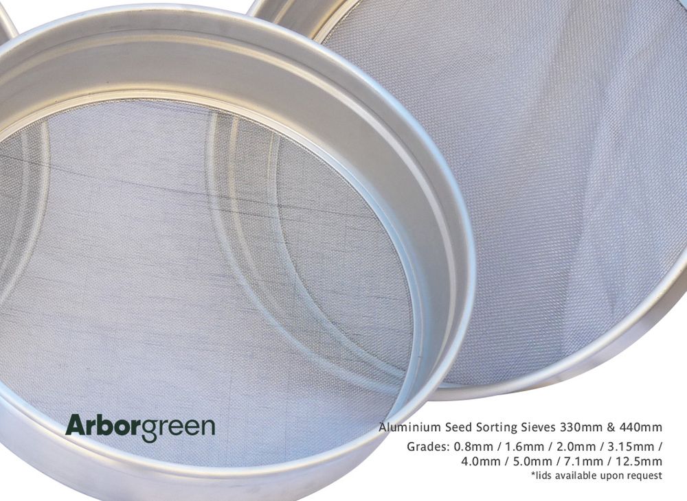 Available seed sorting sieve grades: 0.8mm, 1.6mm, 2.0mm, 3.15mm, 4.0mm, 5.0mm, 7.1mm & 12.5mm. Sold individually.