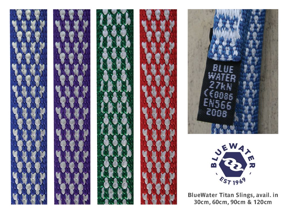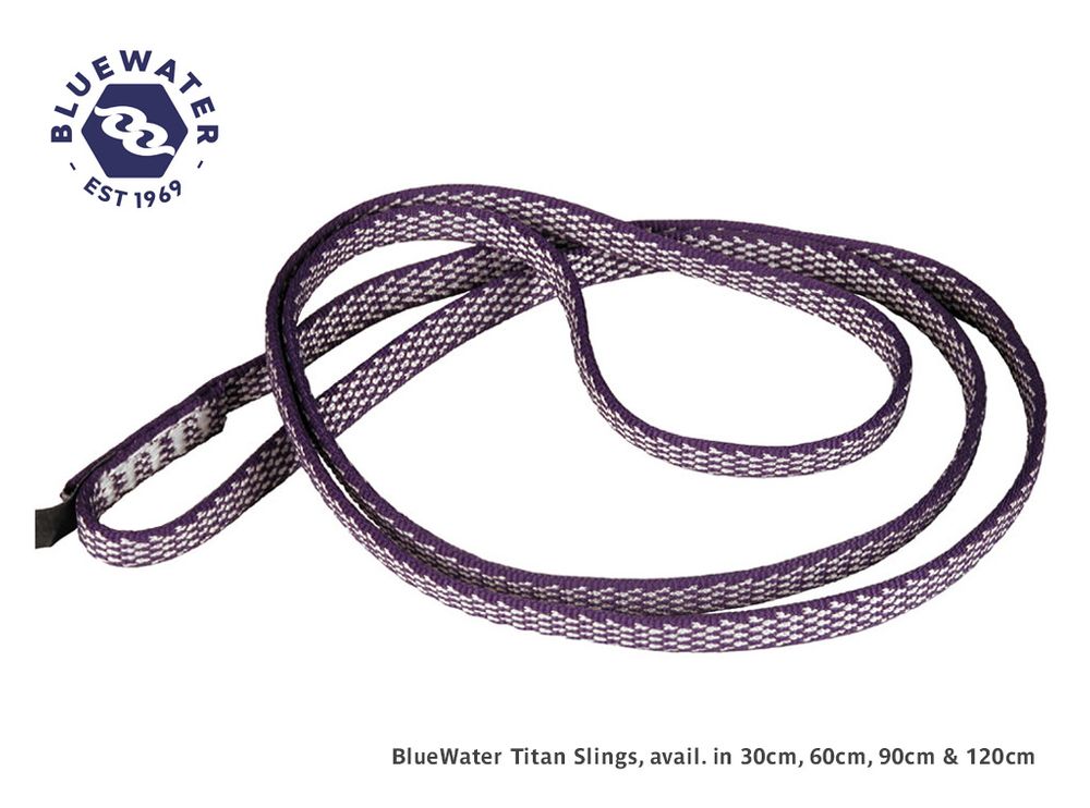 These incredibly strong Dyneema loops are very useful for arborists and recreational climbers. Rated to 27kN, they are lightweight, flexible and narrow. BlueWater developed the first Titan Dyneema sling nearly thirty years ago. BlueWater Titan slings continue to have the highest strength rating in the market. Superior cut and abrasion resistant webbing and thread design. Sewn with custom Dyneema thread for superior strength and performance. Available in assorted colors in a range of lengths. CE and UIAA certified. Manufactured in the U.S.A.
