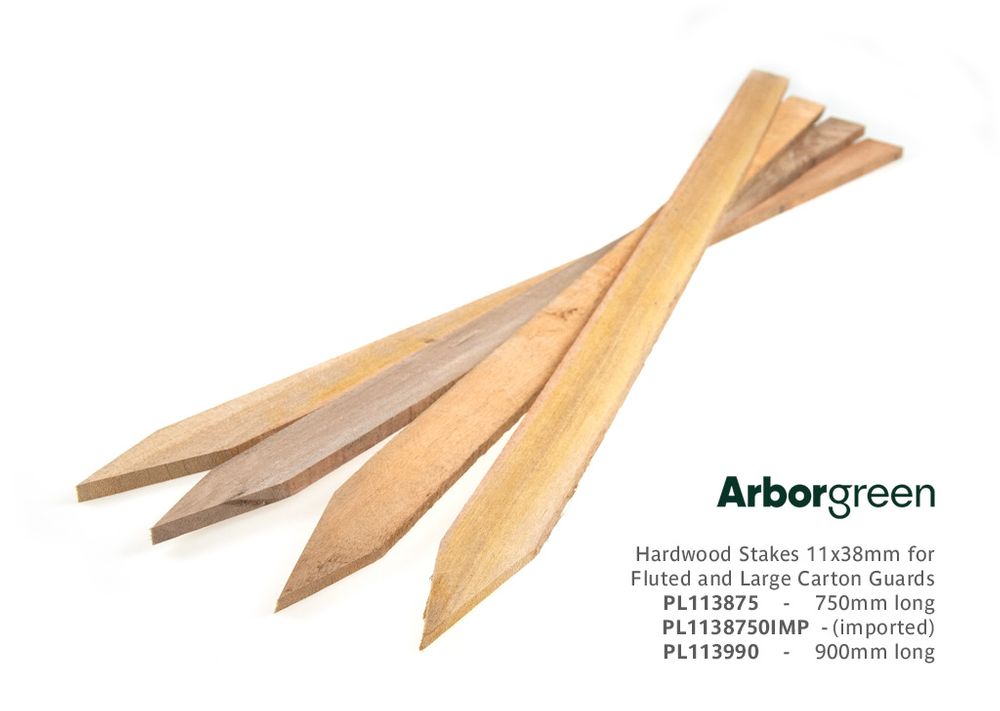 Pointed hardwood stakes for a wide range of tree planting applications from seedlings requiring longer lasting stakes, up to mature tree planting in roadside and urban applications. Australian hardwood.