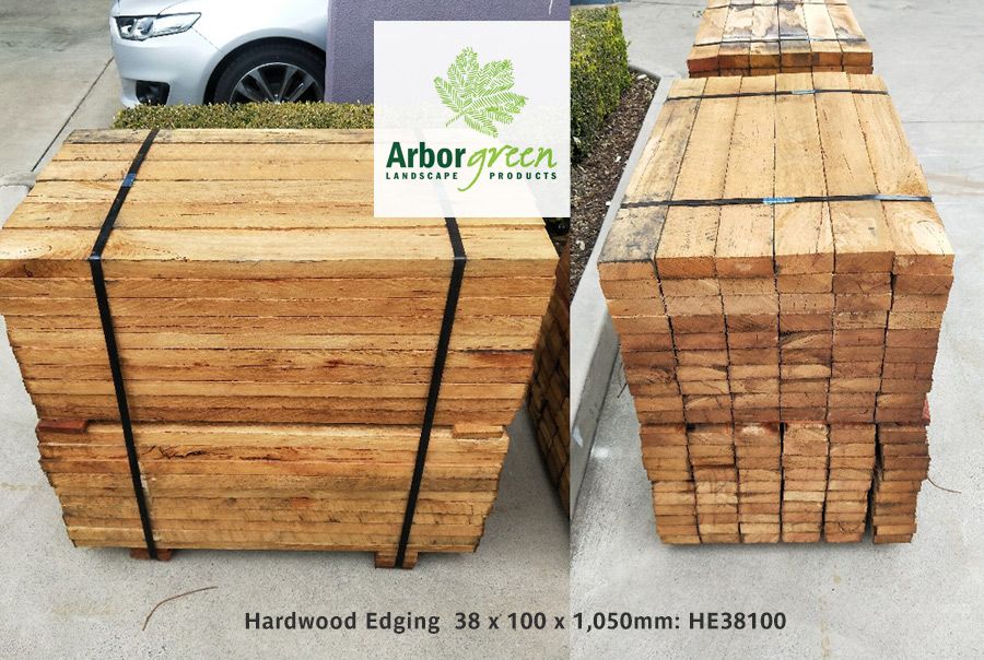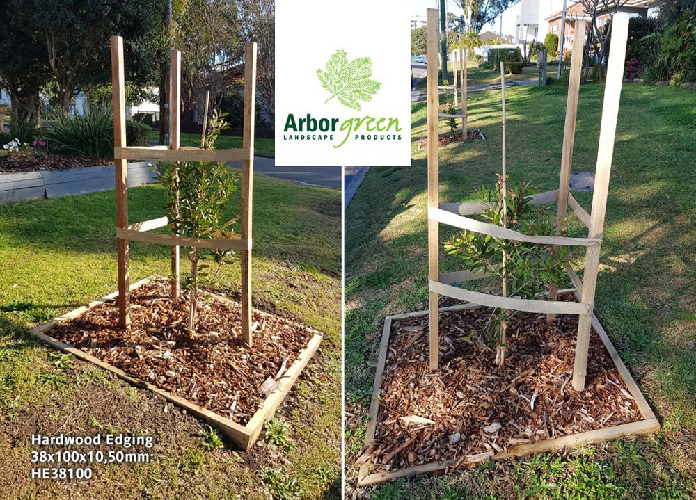 Hardwood lawn & garden edging. A cost effective option typically used by landscape contractors for applications such as tree planting borders.