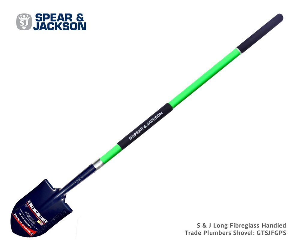 Fibreglass handled plumbers shovel by Spear & Jackson. Trade quality 3mm thick fibreglass with carbon steel blade ideal for digging drains & holes.