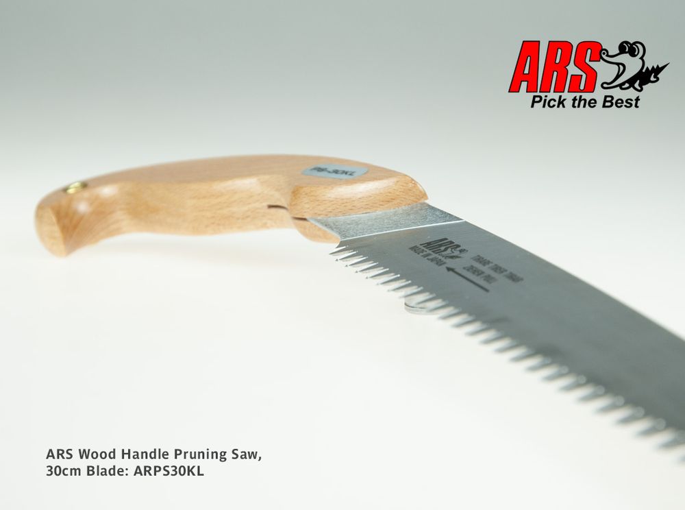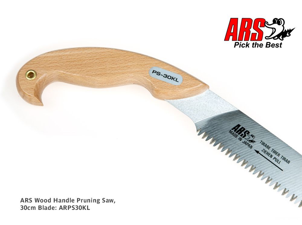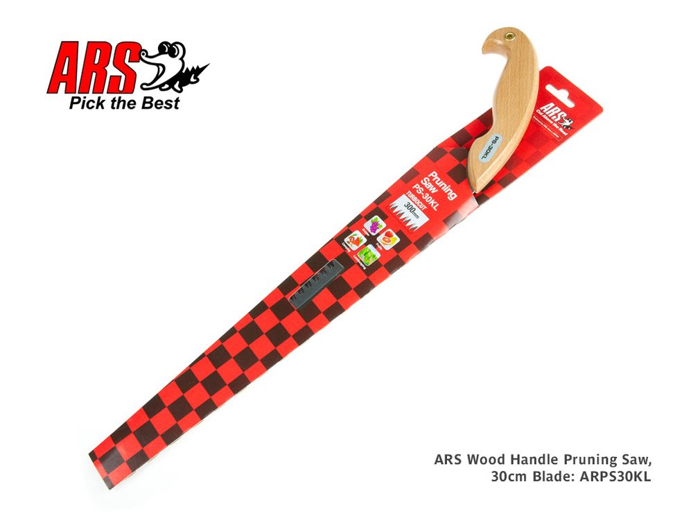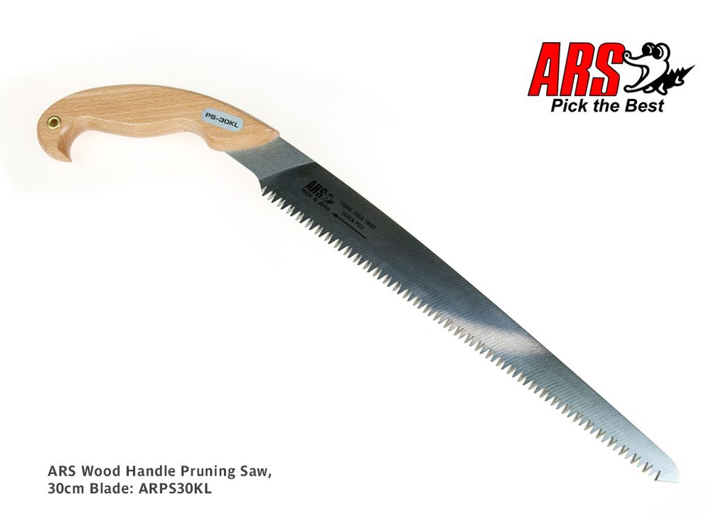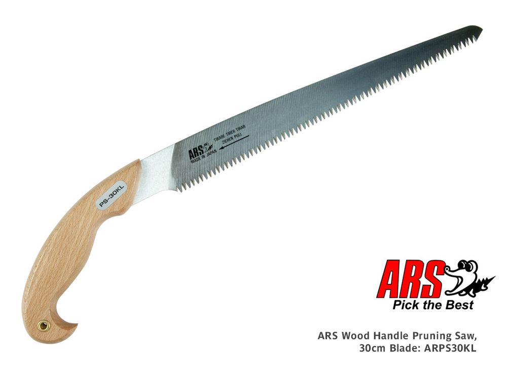 The ARS PS-30KL is a classic wood handle pruning and arborist saw. The 30cm long blade is taper ground for low friction, high carbon steel for outstanding cutting edge durability and hard-chrome plated for corrosion resistance.