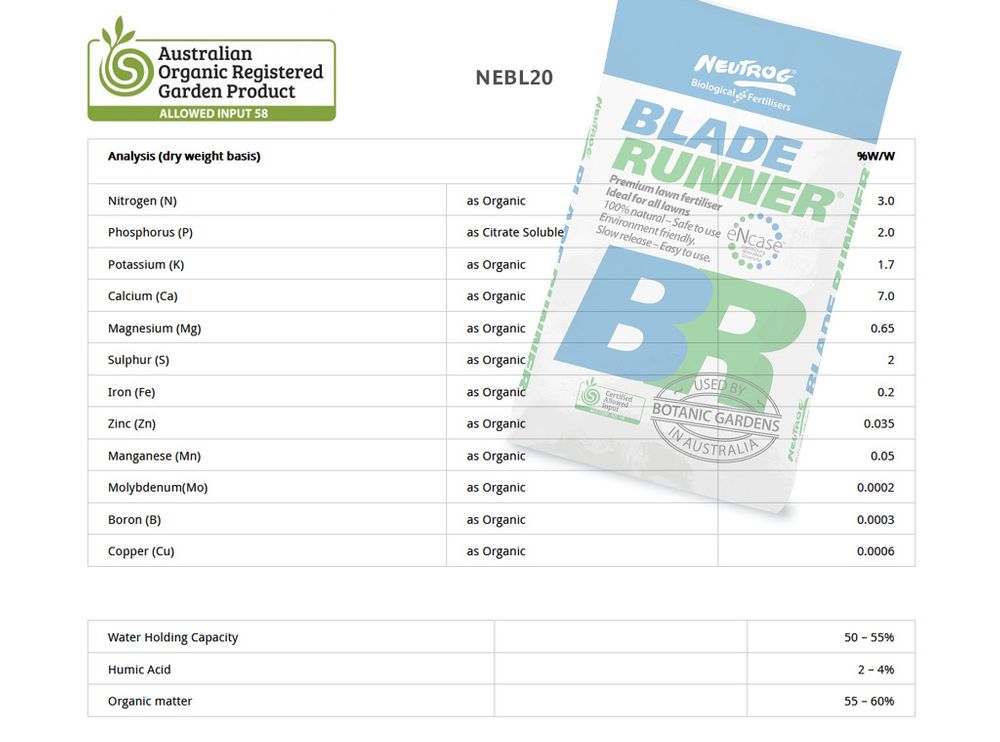 BLADE RUNNER by Neutrog is a premium lawn fertiliser ideal for all lawns. Can be used on all plants.