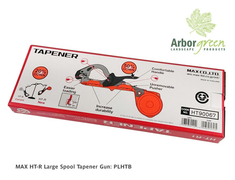 The new improved and lighter MAX® HT-R Large Spool Tapener Gun replaces the original HT-B(NL). Innovative single handed tapener gun is ideal for rapidly securing vines, staking small plants and training fruit trees. By simply squeezing the handle the tape gun wraps tape around the stem then cuts the tape and staples it securely in one action.