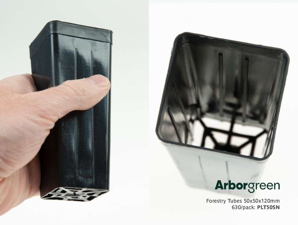 Forestry tube-stock tubes for tree & native plant propagation – 50x50x120mm, 735/Pack Made in Australia from 98% Recycled Material. These tubes fit our Forestry Tray PLNTT which holds 50 of these tubes.