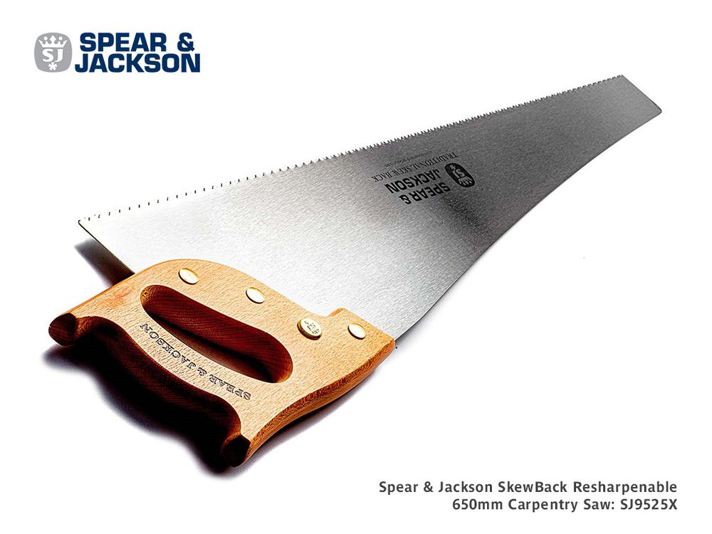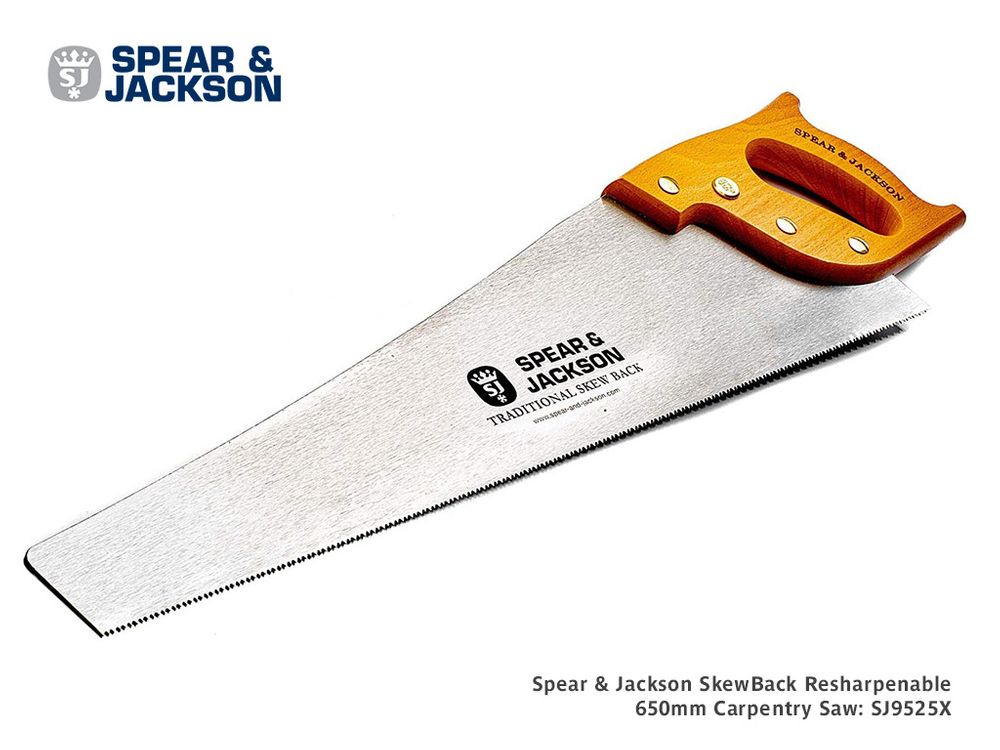 This traditional timber handle carpenters SkewBack saw by Spear & Jackson features a full 650mm long blade with precision ground and resharpenable teeth.
