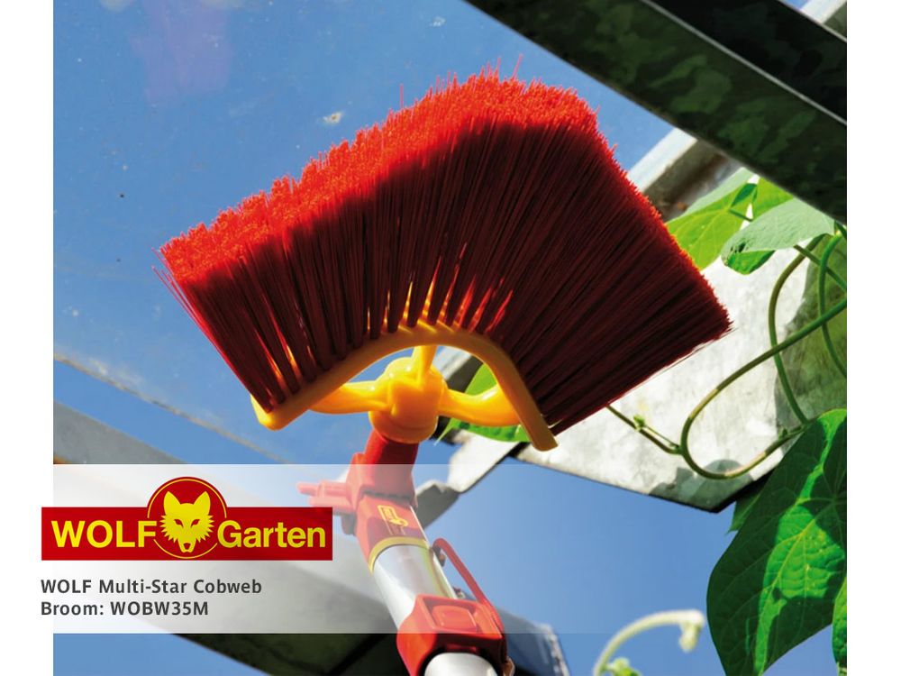 The WOLF-Garten® Angle Broom is uniquely designed to clean those hard to reach places which traditional brooms struggle to reach. Ideal for removing cobwebs the head rotates 180° for positioning at any angle to reach almost any corner, crack or crevice. Fits the WOLF Multi-Star Click System such as the 150cm handle or you can even attach it to their telescopic extension poles for high hard-to-reach spots. Note: head only; see related products below for a matching handle or extenstion pole.