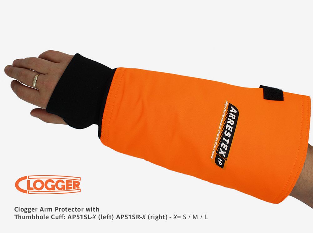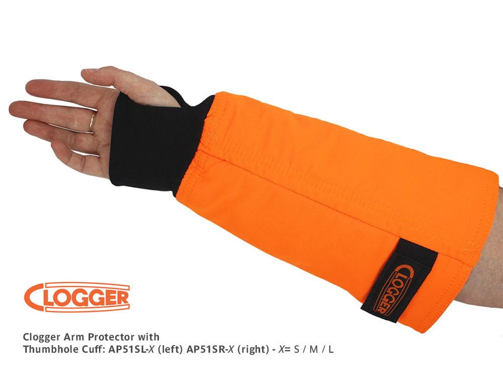 Hand and arm injuries are common when cutting branches and pruning trees; from simple scrapes to serious chainsaw injuries. The new Clogger AP51 arm protector is designed to be light, breathable, and flexible for complete freedom of movement. The latest AP51 (replaces AP31) version by Clogger is designed to protect your arm from the elbow to the wrist with a new stretch thumb-hole cuff for a secure fit.