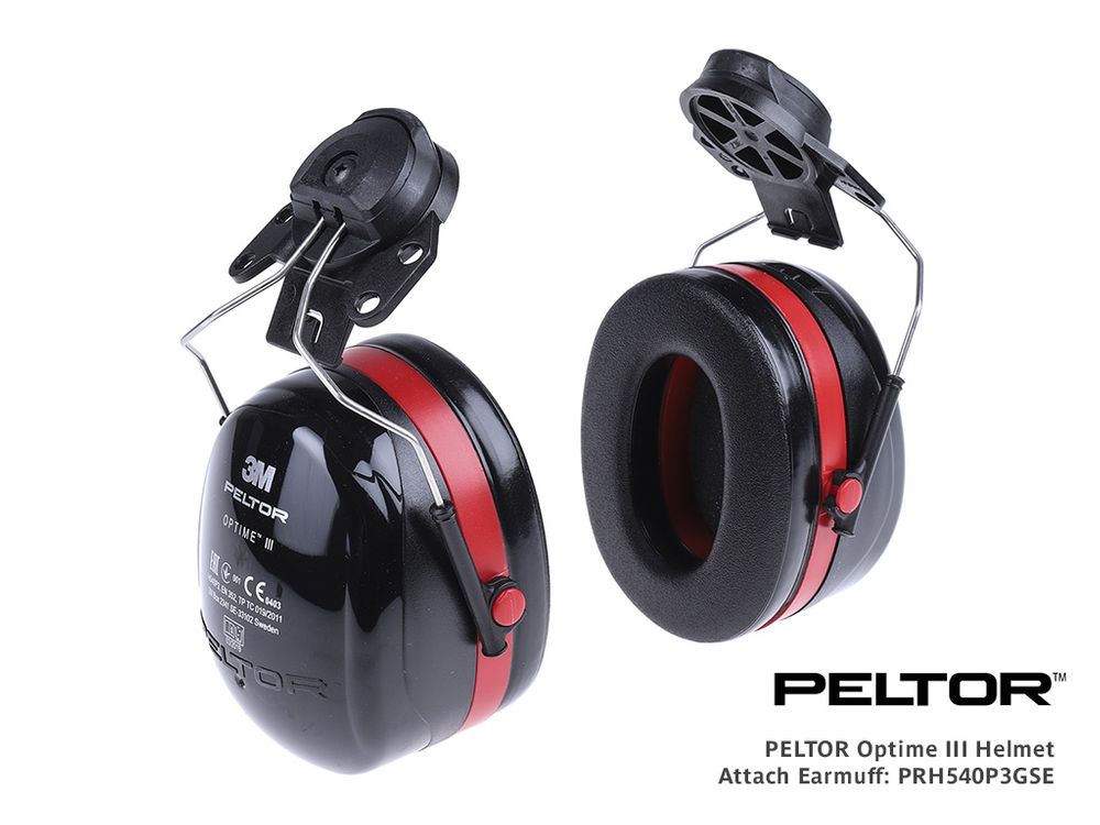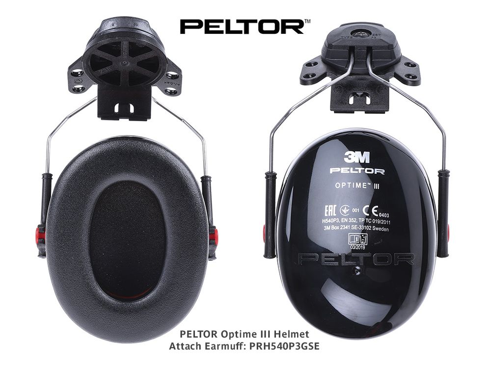 PELTOR™ Optime™ III Earmuffs are ideal for use in extremely loud environments and applications where typically hard hats are required. Multiple adaptor options are available for compatibility with a wide selection of helmets. Optime™ helmet attached earmuffs reduce noise levels up to 30 dB and have a double-casing technology that minimises resonance in the holder casing resulting in maximum high-frequency attenuation. The large space inside the cups helps reduce heat and moisture build-up, and the soft, wide foam cushions offer low contact pressure around the ears, making them comfortable to wear for long periods and increasing compliance through user wear preference.