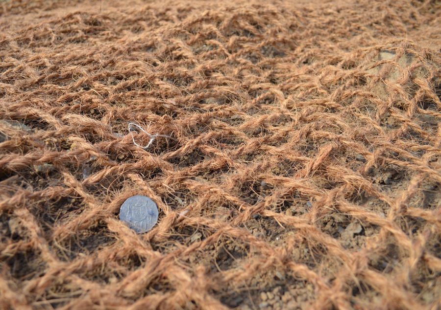 EKO™ Coir Mesh is a very durable, natural anti-erosion barrier. Considerably stronger than jute, Coir products are used in areas subject to high wind and rainfall conditions. Its open weave does not suppress weeds but is excellent at holding soil together whilst seeding is establishing; the fibre ropes help protect the seeds and soil particles from being washed away. The strand flexibility allows it to be placed around existing small vegetation.