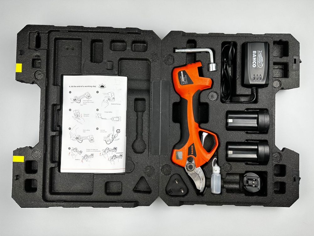The BAHCO BCL20iB cordless Li-ion secateur comes complete with 2 batteries for up to 6 hours runtime. Featuring hard chromed high quality steel blades the unit offers a progressive cut with 2 blade opening settings and on-board LED screen indicating remaining charge & number of cuts.