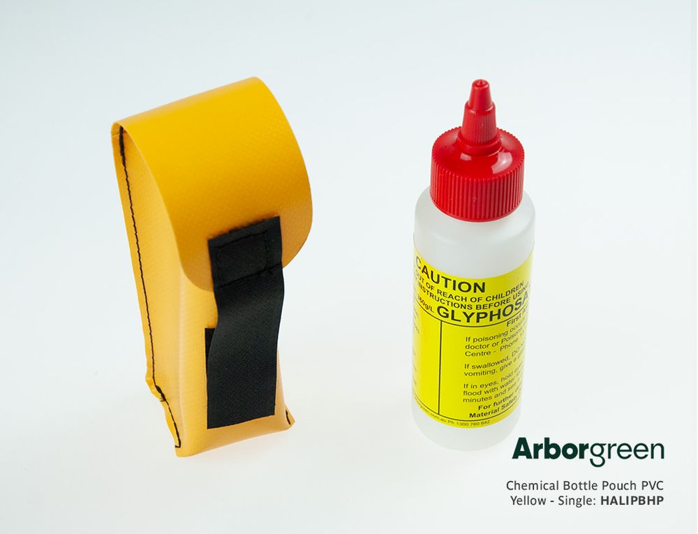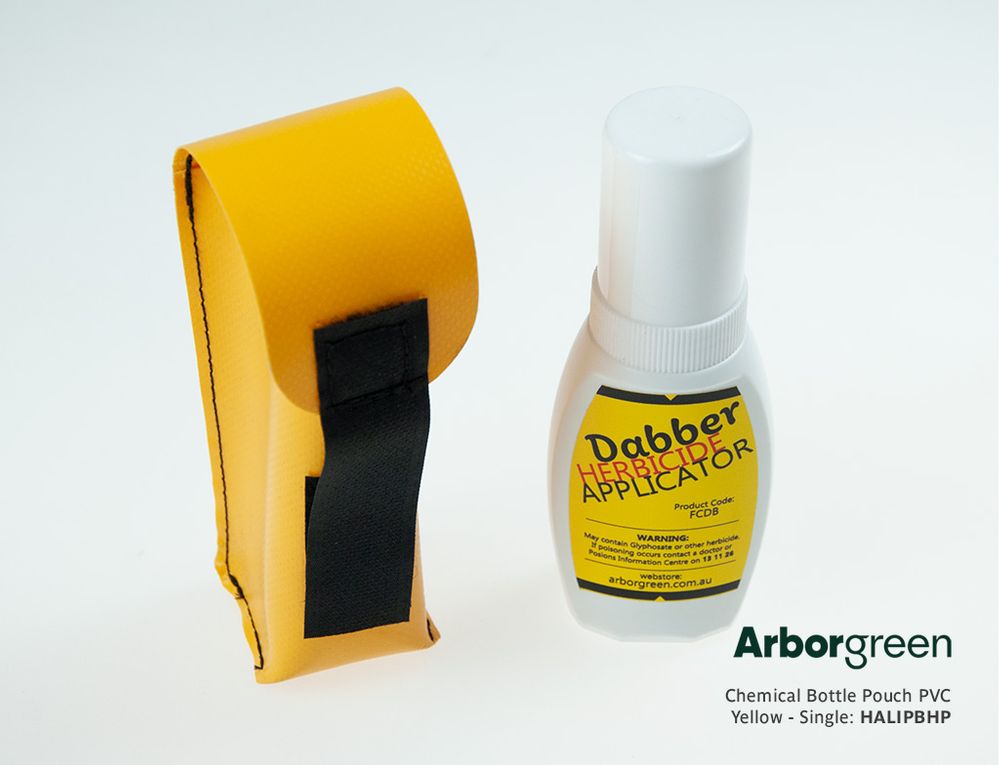 Yellow belt mounted PVC pouch ideal for holding a Dabber herbicide applicator or 125ml twist bottle applicator.