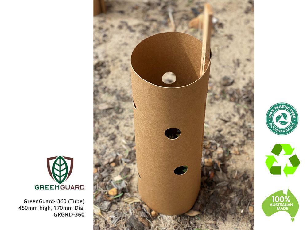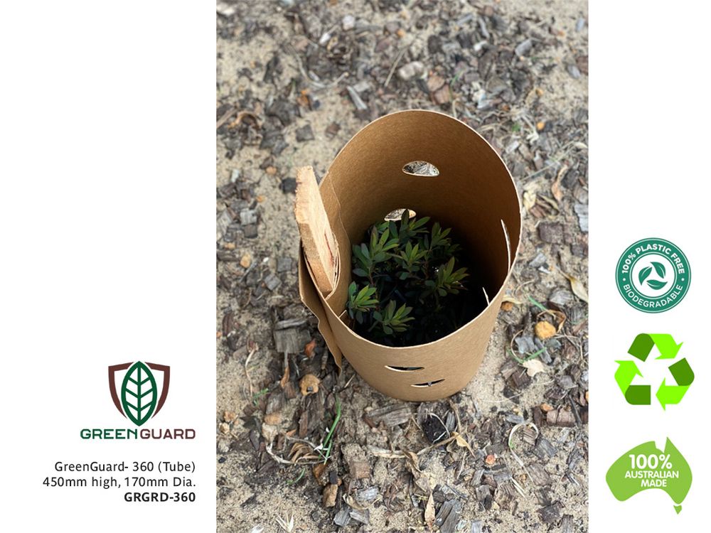The GreenGuard 360 is a tube tree guard that will help protect saplings from rabbits, hares, wallabies and kangaroos. They are easily installed with one rectangular stake, 100% biodegradable and Australian made.
