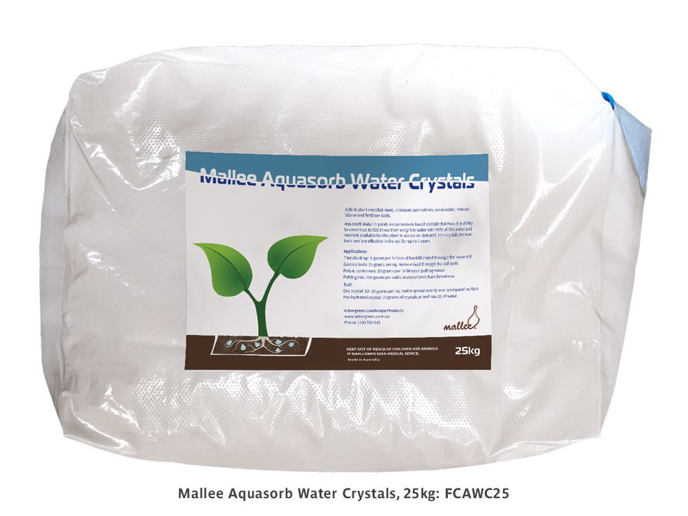 Aquasorb Water Crystals when incorporated into soil or potting media absorb and retain large quantities of water and water-soluble nutrients. Unlike most products that become hydrated, water crystals are able to release the absorbed water and nutrients allowing the plant to have water and nutrients available as needed.