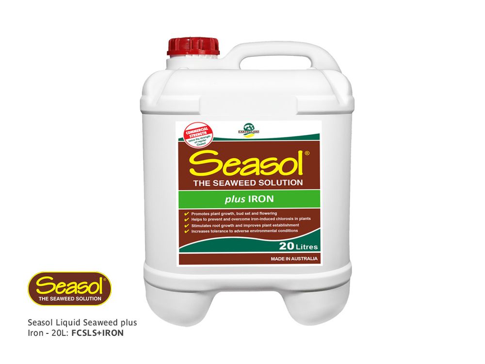 Seasol plus Iron is a superior combination of Australia’s finest seaweed concentrate and chelated iron. It has all the benefits of Seasol, with a maintenance dose of iron to help in preventing or overcoming chlorosis.