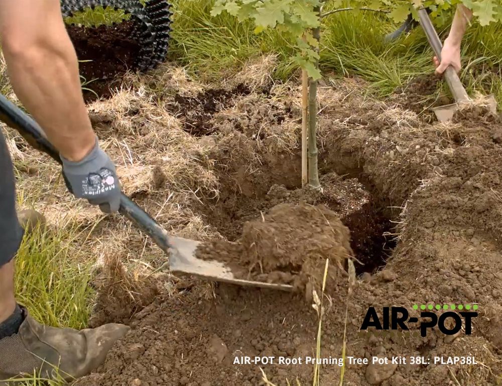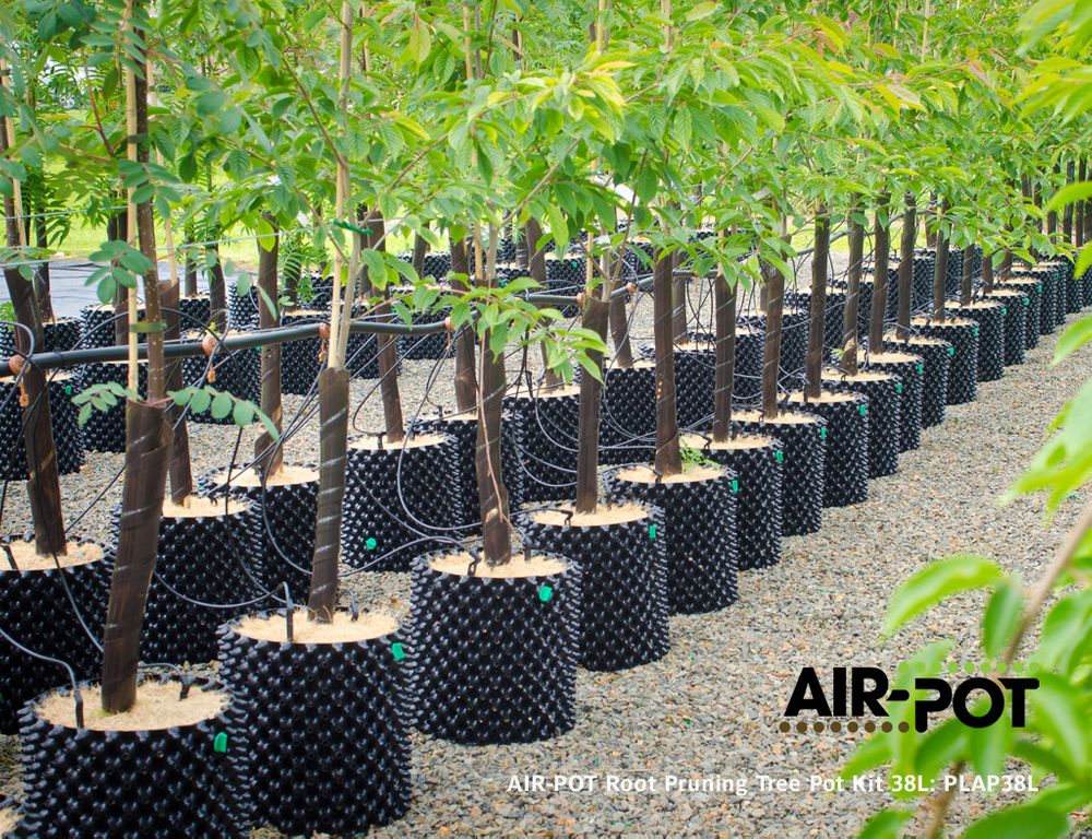 AIR-POT® encourages natural radial root development resulting in the planted trees growing a uniform radial root system in all directions as they would in nature. In contrast, radial roots that can develop in hard-walled pots may end up wrapping around the base of the trunk, constricting the trunk, impeding growth and ultimately leading to early death of the tree or even unexpected breakage of the trunk at the base of the tree.