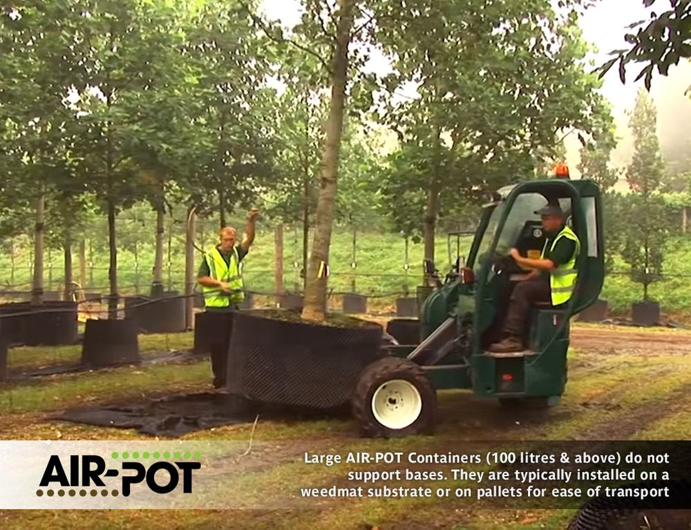 - Note: 100L, 200L and 400L AIR-POT containers are not supplied with a base; they are typically placed on root barrier or weed-mat and/or constructed on a pallet for easy transport.
