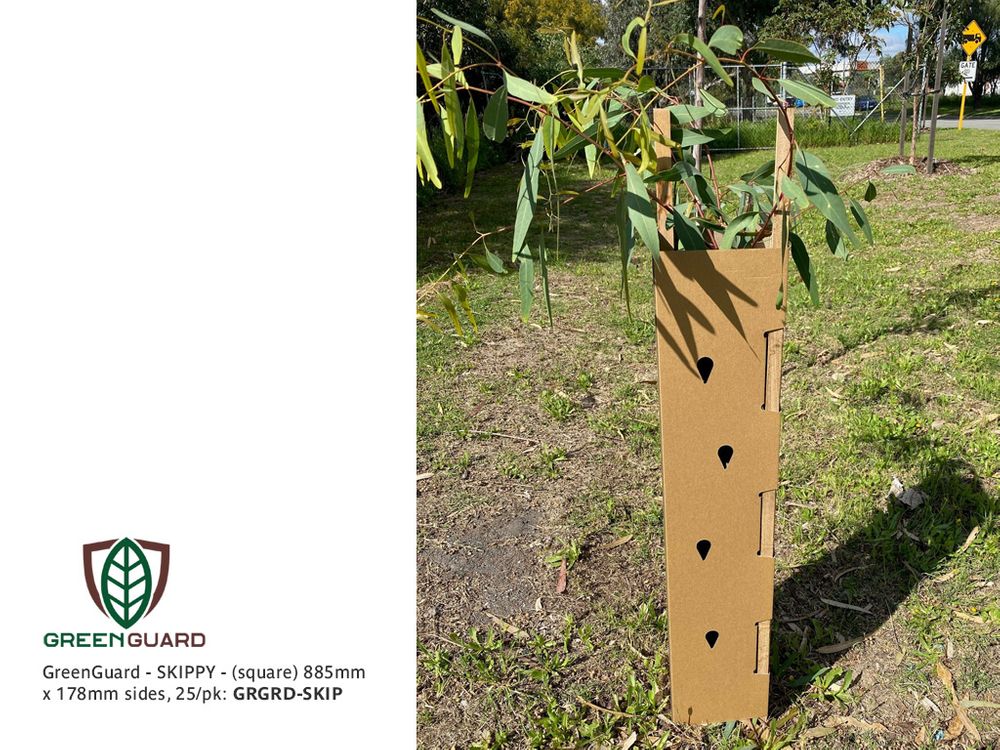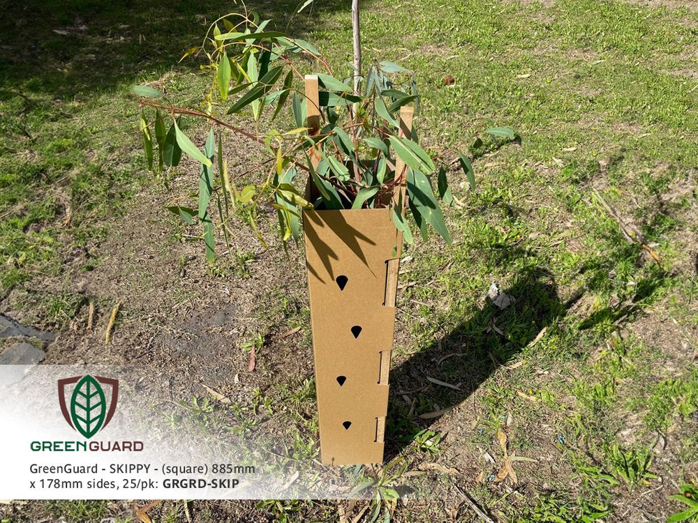 GreenGuard Kangaroo Guard 'SKIPPY' is a 885mm tall square biodegradable tree guard to to help protect young trees from Kangaroos and Wallabies. Proudly made in Australia, GreenGuard offers a range of 100% biodegradable, durable and weather resistant tree guards.