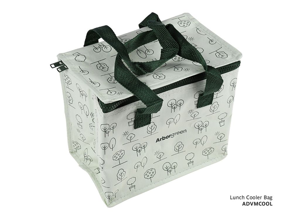 PP woven laminated 140gsm with foil insulation, 2 way zip & webbing handles.