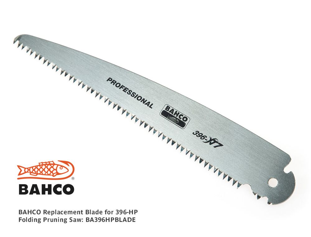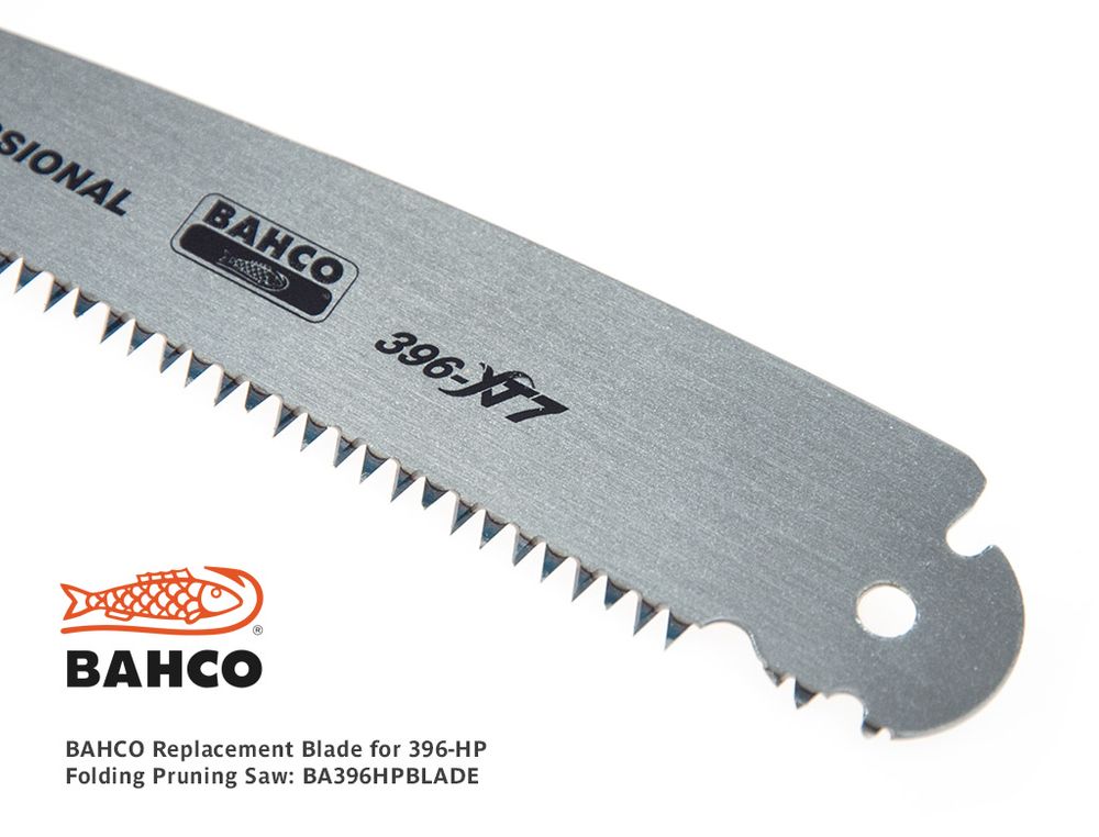 Replacement blade for the popular BAHCO 396-HP folding saw. The blade has hardened XT7 teeth - multipurpose conventional pruning saw style for green or dry wood. Blade length: 18cm