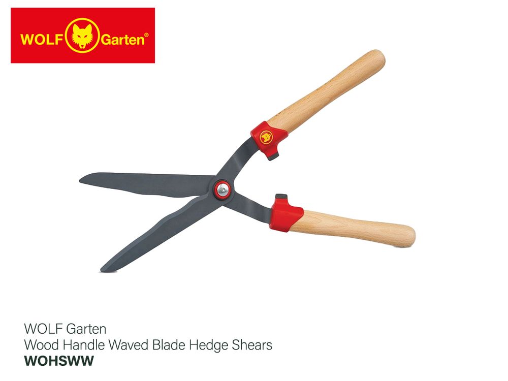 Wolf Wood Handle Waved Blade Hedge Shears